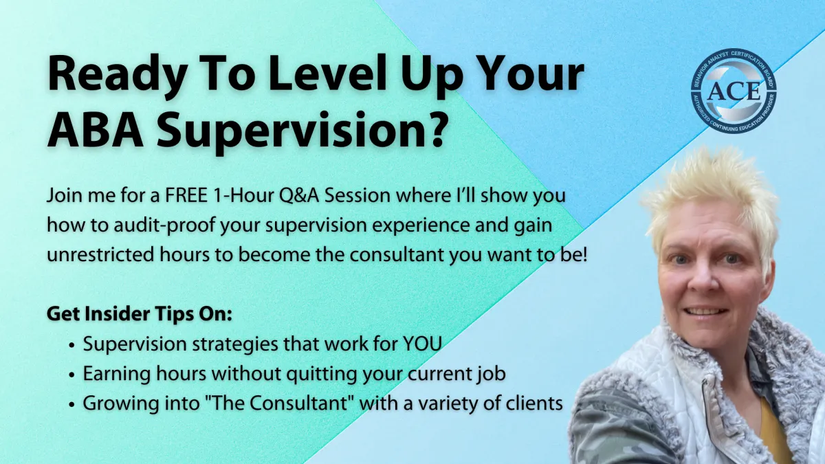 Join me for a Free 1 hour consultation where I will share my philosophies about Supervision and ABA, Show your our Audit Proofing paperwork, and Answer ALL your burning questions about Remote ABA Supervision!